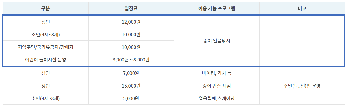 [이용 요금] : 대인 12,000원 / 소인 10,000원 / 3세 미만 아동은 입장 무료