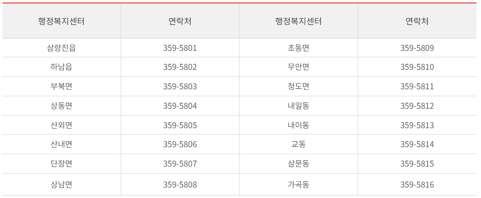 - 신청 방법 : 주소지 읍, 면, 동 행정복지센터 방문 신청