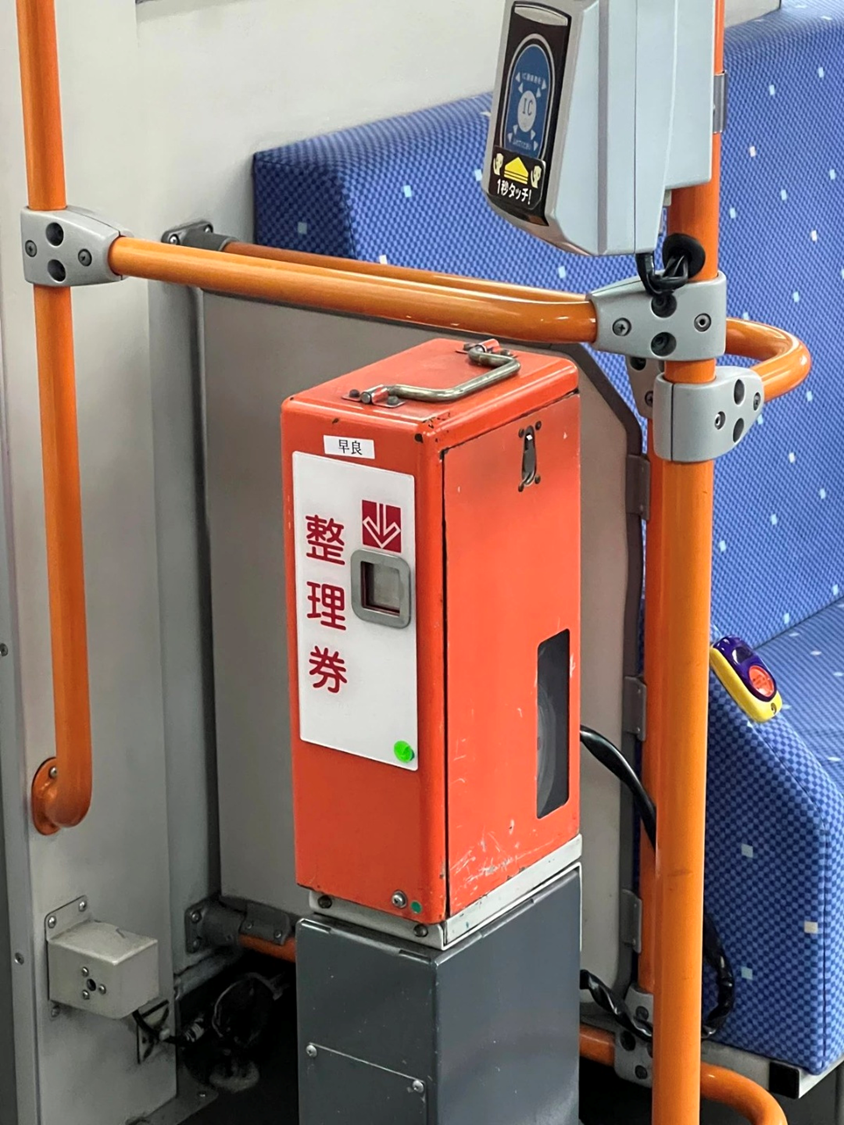 버스를 타시면 주황색 조그만 통이 있고 통에는 종이(정리권)를 뽑을 수 있도록 종이가 나와 있습니다.