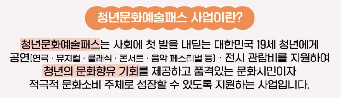 청년문화예술패스는 사용가능한 문화생활이 정해져 있어 공연 또는 전시를 볼 수 있습니다.